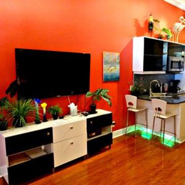 "La Dolce Vita" is a totally renovated beautiful 1 bed, 1 bath condo! Sleeps up to 4. It has a dramatic, soaring 14ft high ceiling & crown molding throughout, recessed lighting on dimmer switches throughout the condo. 75 inch Smart TV.
